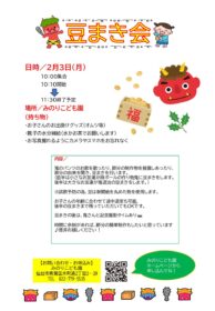 イベント情報一覧 受付中 みのりこども園の節分行事【豆まき会】に一緒に参加しませんか? 受付中 子育てサロン「リズムであそぼ&ママとほっと時間」 受付中 令和8年度 入園児童募集(1号) 受付中 令和7年度 11月1日付 入園児童募集(2歳児・満3歳児・4歳児・5歳児) 受付中 令和7年度 みのりっこクラブ(3歳~小学生)のお申込みはこちらから